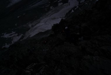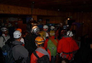 Die ganze Unruhe in der Hütte war vollkommen umsonst. Da zeigte sich wieder einmal wie "Bergkameradschaft" heutzutage praktiziert wird. 04:50 Uhr wir waren startklar, unsere Bergführer hatten uns schon in der Gaststube eingebunden und so ca. 50 Leute drängelten und drückten gegen die Ausgangstür, die abgeschlossen und "bewacht" wurde.