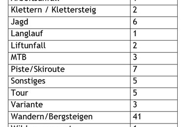 Ca. 20 Prozent der Alpintoten stirbt nicht beim Bergsport, sondern bei der Jagd und bei Waldarbeiten mit Fahrzeugen auf Bergwegen oder durch Suizid im Gebirge.