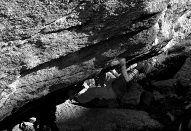 Sonlerto, 8b+“ (Dave Graham überlistet den Boulder noch mit einem Gummiknieklemmer) Da sich Bernd keinen Latexüberzug für das Knie zulegen wollte, ( und hoffentlich werden Gummiüberzüge NIE als gängiges Boulderutensil anerkannt !!!!!!) musste er eine neue Lösung finden...die ewas schwieriger, dafür aber schöner zum klettern ist.