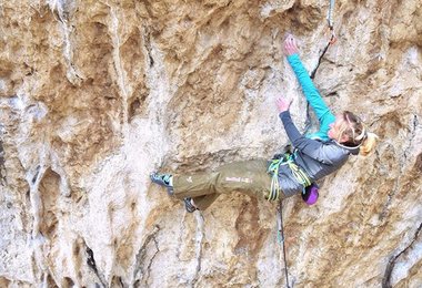 Angela Eiter fährt spontan mit ein paar Bekannten nach Arco. Bei kühlem Wetter aber trockenen Bedingungen versucht sich Angela wieder an ihrem alten Projekt "Bibita Biologica" (8c) im Klettergebiet Narango. Bei einem Besuch im Winter wurde diese Tour von ihr schon mal etwas ausgecheckt, dabei war die Tirolerin von den perfekten Kletterzügen und der satten Schlüsselstelle fasziniert.