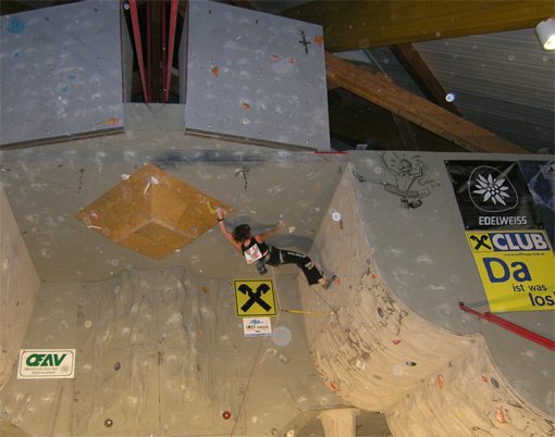 Es war einzig Angela Eiter (ÖAV Imst) vorbehalten, diese Tour bis zur letzten Expressschlinge, die das TOP bedeutet, durchzusteigen. Sandrin Levet (F) scheiterte nur knapp darunter und auch die Slowenin Maja Vidmar fiel kurz unterm Top aus der Wand.