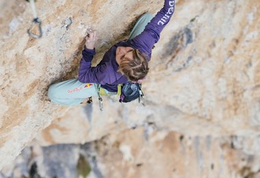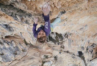 Nach der Begehungen „Hades, 9a“ in Nassereith/Imst packte mich die Lust ein noch schwereres Projekt anzugehen. Ich visierte nicht gerade eine Route im Grad 9b an. Die Gelegenheit ereignete sich spontan. Im Oktober 2015 startete ich erstmals in die „Planta de Shiva“, um die erste Länge im Grad 8c zu klettern. Am Stand sind mir die Leisten der Anschlusslänge ins Auge gestochen. Mein Mann Bernie ermutigte mich, doch hochzubouldern. Zwei Versuche genügten, um zu verstehen, dass mich die Linie durch ihre Schönheit und ihren enormen Anspruch faszinierte und perfekt zu meinem Kletterstil passt.