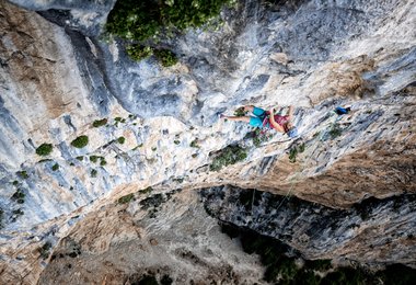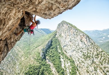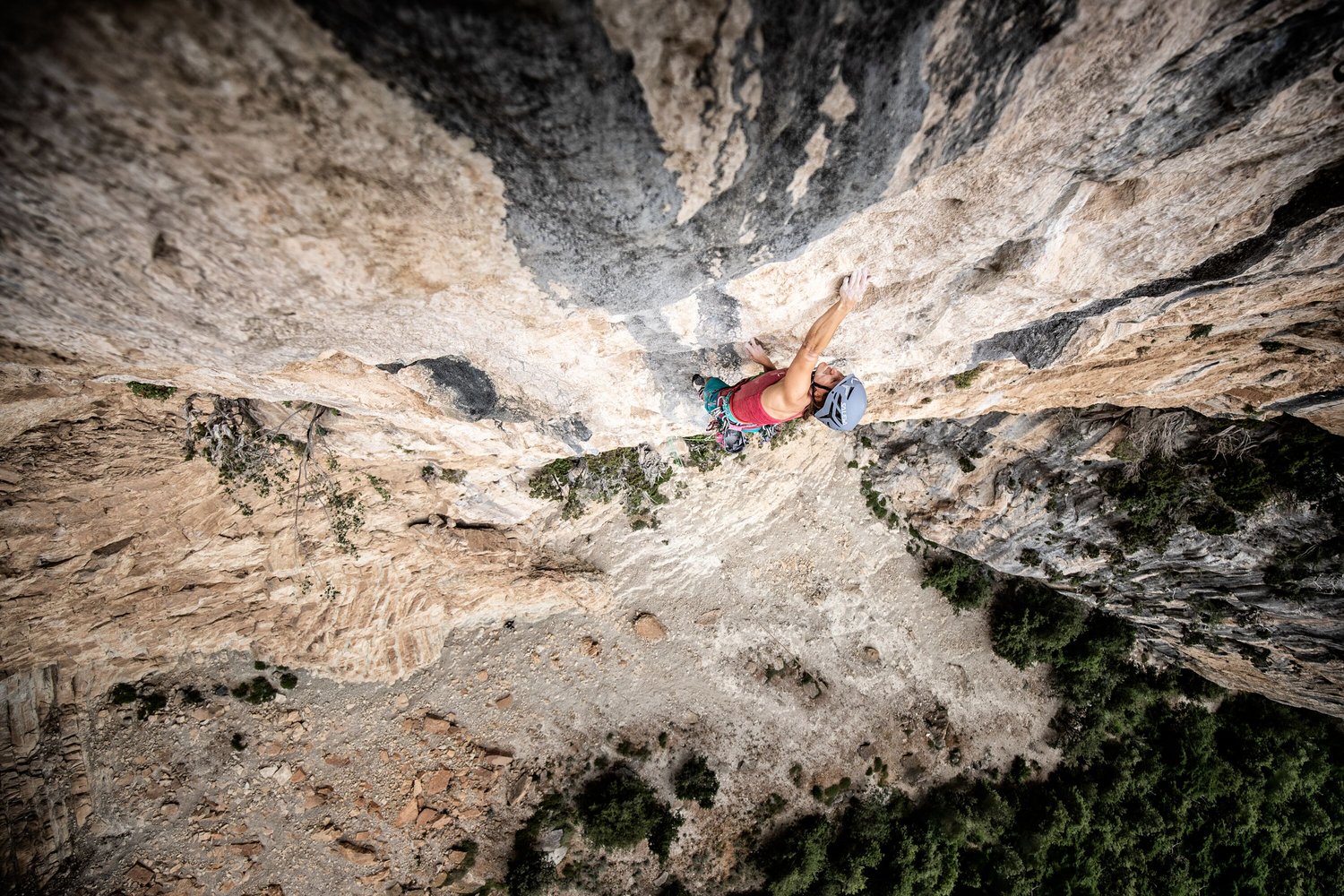 Für mich ist Ali Baba etwas ganz Besonderes, denn diese Route zu klettern war eine große Herausforderung. Ich habe noch nie so eine schwere Mehrseillängenroute gemacht. Ich habe einen Prozess durchlaufen: Als ich im April zum ersten Mal die Ali Baba versuchte, war ich beeindruckt von der Steilheit, der Höhe und von den weiten Abständen zwischen den Bohrhaken (obwohl die Tour eigentlich gut abgesichert ist). Ich weiß, es ist bei weitem nicht die schwerste Mehrseillängenroute der Welt, aber für mich war es eine riesige Herausforderung.