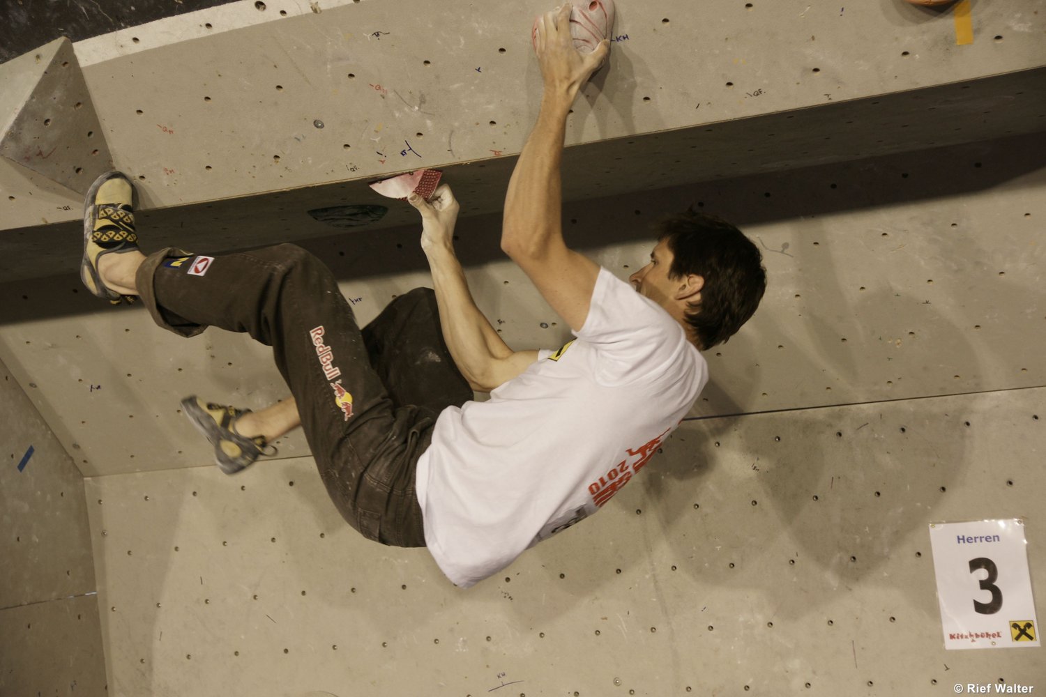 Die ÖWK-Herren wollten in Kitzbühel dem Damenteam um nichts nachstehen und sorgten durch Lukas Ennemoser (OeAV Innerötztal) und Kilian Fischhuber (OeAV Waidhofen/Ybbs) für einen österreichischen Doppelsieg. Das Finale war durchgehend mit Weltcupteilnehmern bestückt und somit ist der Sieg durch den jungen Ötztaler umso höher einzuschätzen. Aber auch der vierfache Boulder-Gesamtweltcupsieger Kilian Fischhuber befindet sich bereits in blendender Form und die Leistungen von Ennemoser und Fischhuber lassen wieder auf österreichische Top-Platzierungen in der Mitte Mai beginnenden Boulder-Weltcupsaison hoffen. Platz drei im Herrenbewerb ging an den Vorjahressieger Baumann Jonas vom DAV Wuppertal vor dem englischen Weltcupstarter Stewart Watson. Die weiteren Finalplätze gingen an Stefan Danker und Hoppe Markus aus Deutschland.