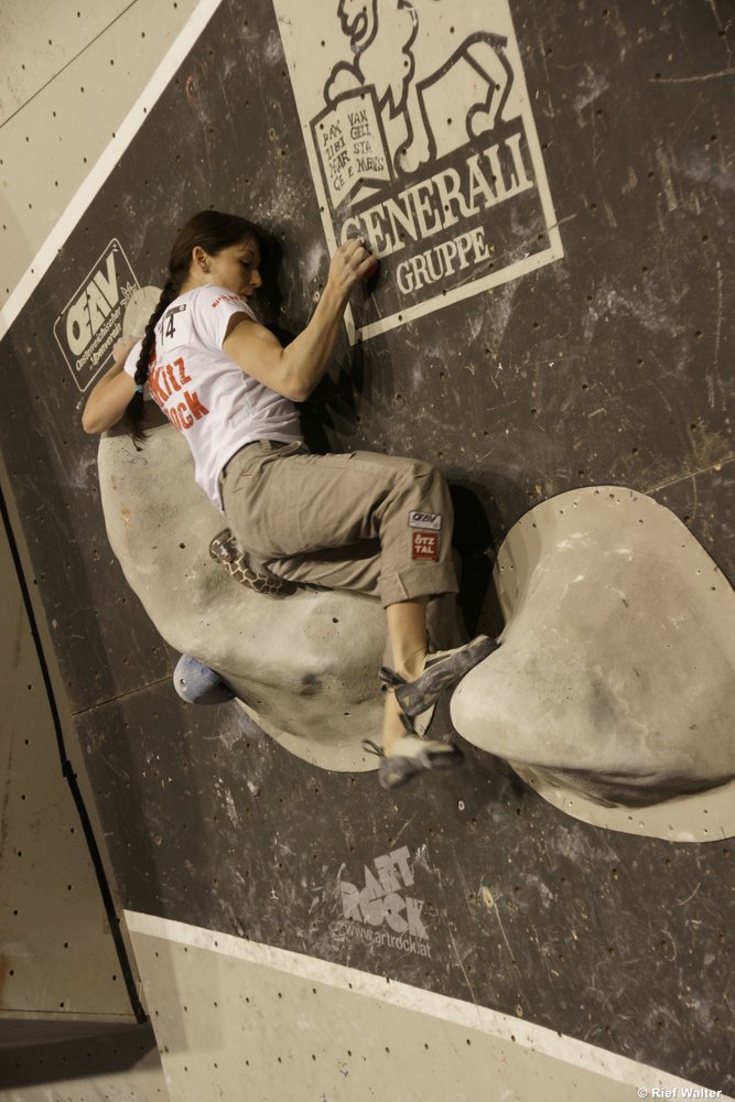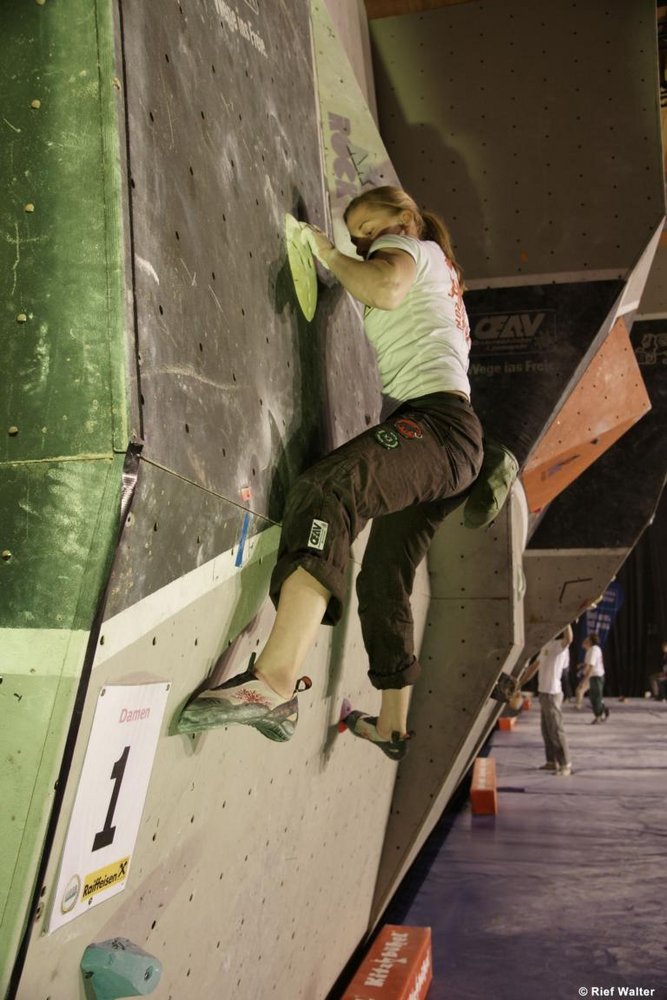 Österreichischer Vierfachsieg bei den Damen durch Stöhr, Bacher, Saurwein und Brunner! Der Damenbewerb war trotz starker deutscher Konkurrenz fest in Österreichischer Hand. Mit Anna Stöhr, Sabine Bacher, Katharina Saurwein und dem 15-jährigen Nachwuchstalent Elena Brunner schafften gleich vier ÖWK-Athletinnen den Einzug ins Finale der besten sechs Damen. Die beiden anderen Finalplätze sicherten sich die DAV-Athletinnen Monika Retschy und Kathrin Lau. In einem sehr spannenden Finale, in dem nur geringe Leistungsunterschiede bei den Finalistinnen erkennbar waren, war jedoch Anna Stöhr (OeAV Innsbruck) die überragende Athletin. Sie stieg alle vier Boulder jeweils im ersten Versuch durch und distanzierte Sabine Bacher (OeAV Innerötztal), Katharina Saurwein (OeAV Innsbruck) und Elena Brunner (OeAV Hall) auf die Plätze 2 bis 4. Lukas Ennemoser gewinnt den Herrenbewerb vor Kilian Fischhuber Pressemitteilung des Österreichischen Wettkletterverbandes