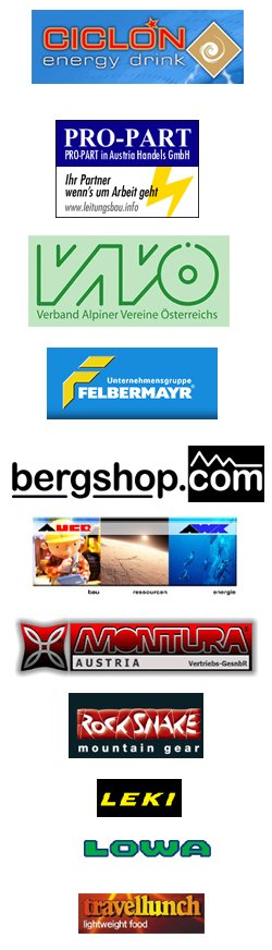 Der Dank gilt allen Sponsoren, die das Team bei ihrem Unternehmen tatkräftig unterstützt haben und auch Karl Gabl, der verantwortlich war, dass die Schönwetterperioden optimal genutzt werden konnten - 5 Gipfel und 2 Erstbegehungen waren das Ergebnis!