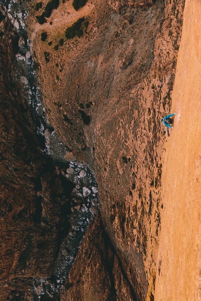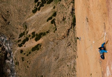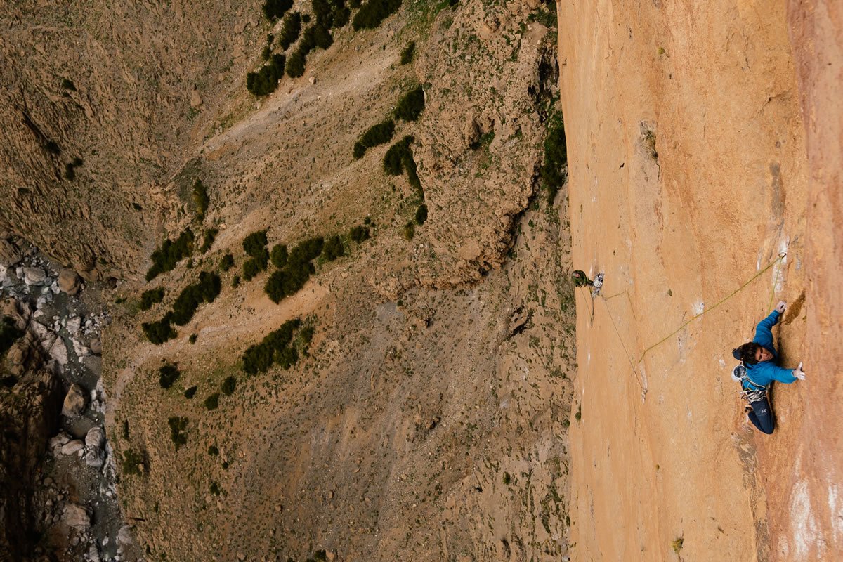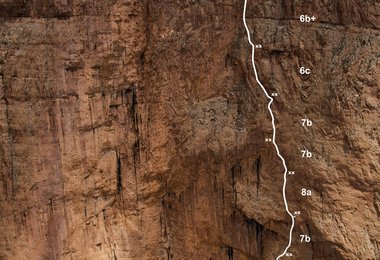 Ines Papert: „Ich kann mir vorstellen, bald wieder nach Taghia zu reisen, um zu versuchen die Route komplett rotpunkt zu klettern. Sie ist mir eine Herzensangelegenheit, denn mit der Verwirklichung dieser Route konnte ein lang gehegter Traum in Erfüllung gehen. Allerdings ist sie durchgängig anspruchsvoll und fordert einen zu jeder Zeit heraus. Ein Grund: Patrik hat Bohrhakenabstände hinterlassen, die eine enorme Reichweite und eine starke Psyche fordern. Der Charakter der Kletterei ist abwechslungsreich, der Fels teils stark überhängend aber auch plattig und sehr rau. Lange runouts in allen Seillängen machen eine Begehung zu einem alpinen Abenteuer“.