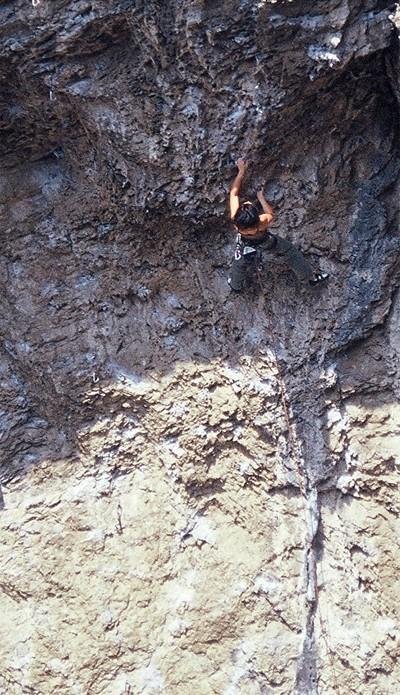 Die Anregung, „Lakho noc Irena“ zu versuchen, erhielt ich vom Slowenischen Spitzenkletterer Uros P. Die athletische und technisch anspruchsvolle Route hat 25 Meter und ist mit zwei Boulders garniert. Ich begutachtete die Route und war von ihr sofort angetan. Die Crux war für mich der erste Boulder: der Dynamo an einem schlechten Untergriff war schon sehr nahe an der Grenze. Dagegen bereiteten mir die messerscharfen Leisten an der oberen Schlüsselstelle kaum Probleme.