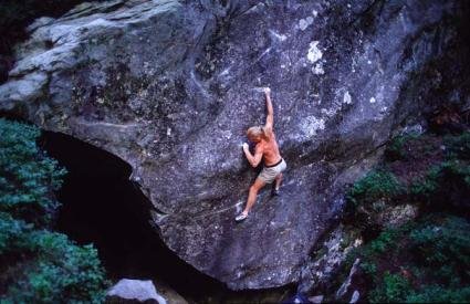 Man hat bei uns einfach geniale Gebiete entdeckt und die Lust geweckt, in den Gebieten zu klettern, die motivieren. Auch hat die gerade durch das Bouldern hervorgerufene Möglichkeit die eigene Leistung schnell hochzuschrauben zur Popularität beigetragen. Es ist auch die Lust etwas zu schaffen. Zuerst hat man überhaupt keine Chance, dann arbeitet man eine Zeit und und dann löst sich das auf.