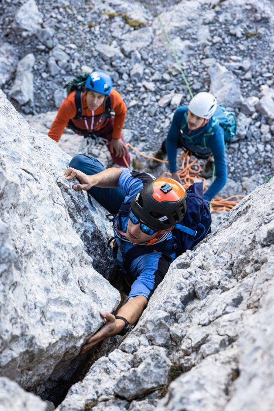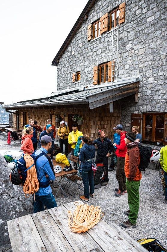 Thematisch liegt der Schwerpunkt des Wochenendes auf den Punkten Sicherungstheorie, Standplatzbau, alpines Sichern und zügiges Seilmanagement. In drei Gruppen werden die insgesamt 16 Teilnehmer*innen dabei im Umfeld der Blaueishütte unterwegs sein. Umfangreiches Feedback der Coaches soll dabei helfen, den eigenen Wissensstand besser einschätzen zu können. Dazu wird es Tipps für den weiteren beruflichen Werdegang geben.