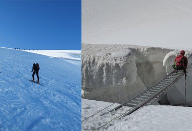 Gerade in schneearmen Wintern sind Gletscherspalten auch bei Skihochtouren ein Thema!