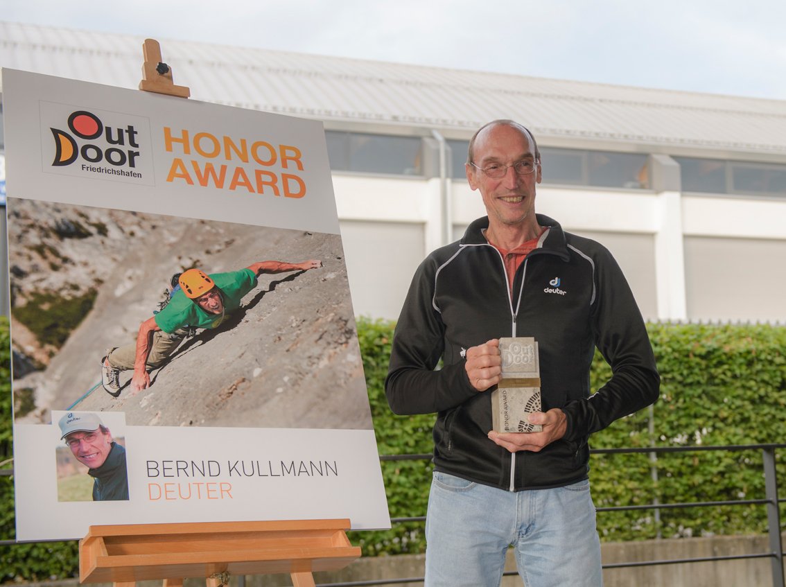 Da freut es uns besonders zu höhren, dass Bernd dieses Jahr den „OutDoor Honor Award“ - damit werden Persönlichkeit geehrt, die sich um die Outdoor-Branche besonders verdient gemacht haben - bekommen hat. Bernd Kullmann stieg schnell vom Außendienstler zum Produktmanager auf, dann wurde er zum Gesamtverantwortlichen für den Bereich Rucksäcke und 2006 wurde er schließlich zum Geschäftsführer von Deuter. Für Bernd war immer nur der Rucksack wichtig und das Team, das ihn entwickelt. „Ich habe nur das gemacht, was ich am besten konnte: Klettern und Bergsteigen“, sagte er einmal über sich.