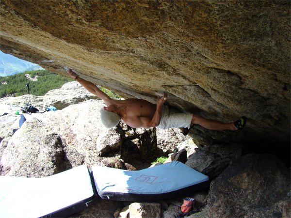Bereits letzten Herbst – als die Linie noch keine Erstbegehung hat – erfahre ich von diesen „alles abverlangenden“ Zügen. Optisch sieht der Boulder wirklich genial aus – für die Alpen ein sicherlich einzigartiges Stück Fels – vergleichbar mit Linien in Südafrika.