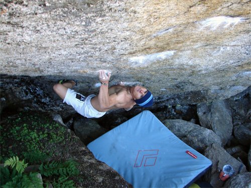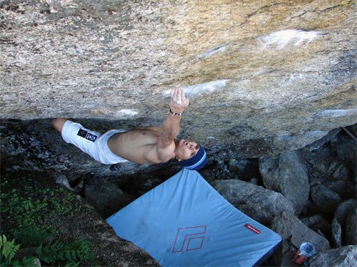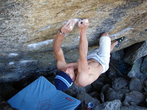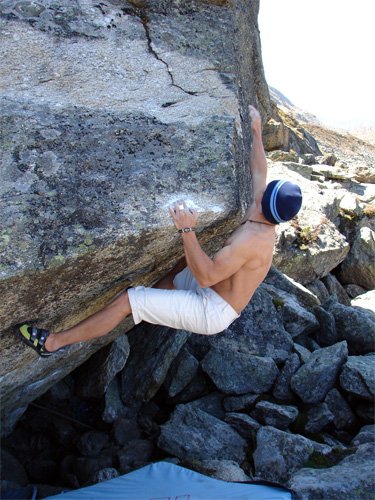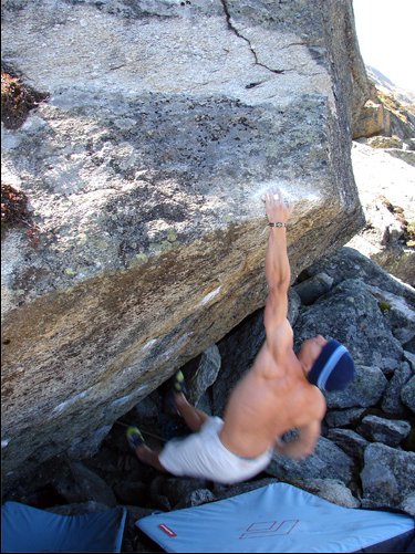 ... gleich der erste Zug hat es in sich: von einem Bankerl blockt man zuerst zu einem winzigen, schlechten Griffchen ...