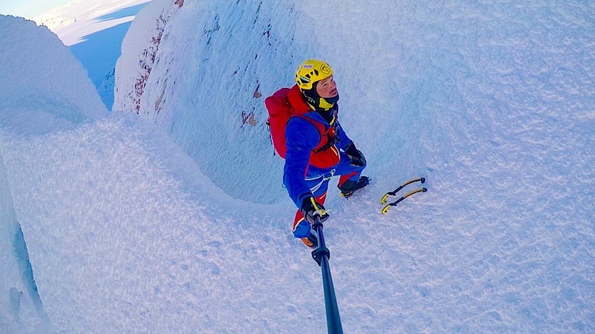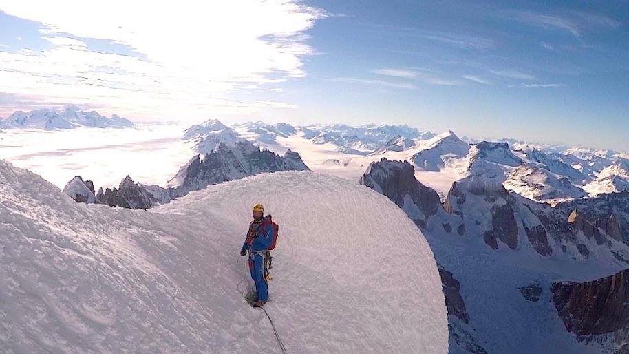 Markus kennt den Cerro Torre wie sein Wohnzimmer, 2013 gelang ihm die Ragni-Route (M4 90°, 600m) in der Westwand Cerro Torre im Alleingang und ein Jahr später stieg er wieder bei patagonischem Sauwetter mit Schneesturm in etwas mehr als 3 Stunden solo an der gleichen Route auf den Torre Gipfel. Im gesamten Massiv wurden an diesem Tag wetterbedingt keine Besteigungen durchgeführt.
