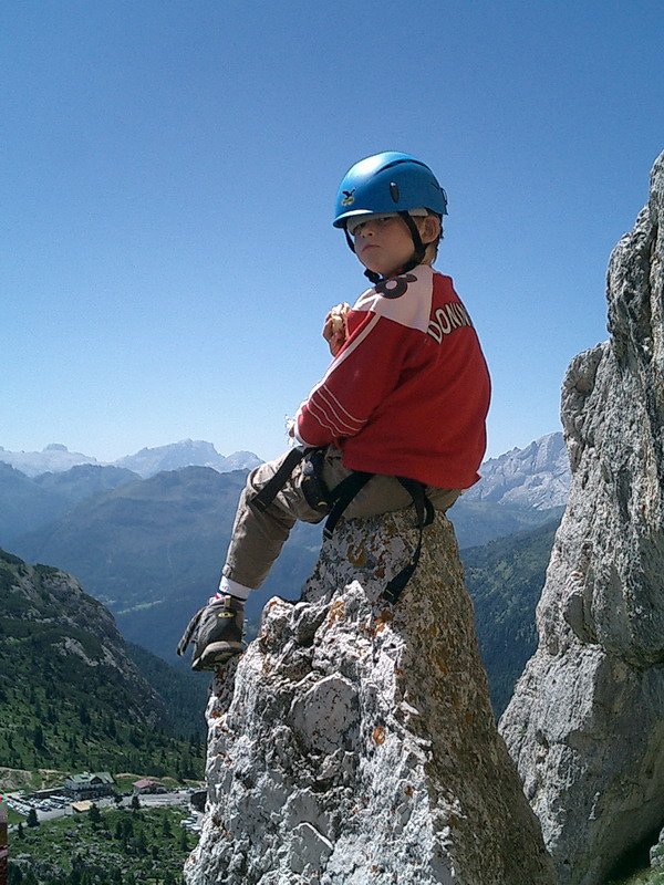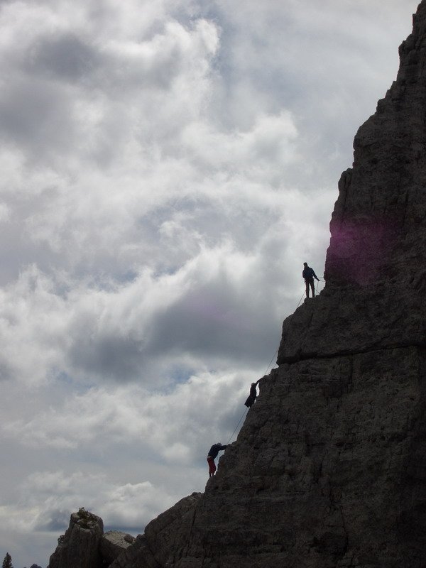 Charakter: Plattenklettern, mit guten Griffmöglichkeiten, nie übermäßig “steil”, ideal für Einsteiger. Die Felsbeschaffenheit ist Dolomit-Riffgestein, von der Witterung gezeichnet.