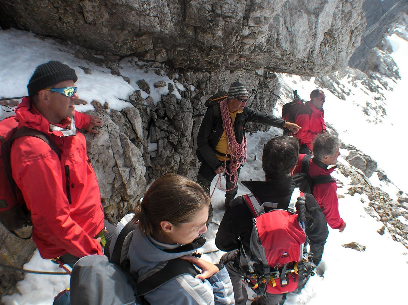 Die Gruppe machte unter fachkundiger Führung eine Dachsteinüberquerung. Ausganspunkt war die Bergstation der Südwandbahn, von dieser stieg man unter der Führung von Wilfried Schrempf (Seethalerhütte) und Hans Gapp (Adamekhütte) über den Schulteranstieg zum Hauptgipfel auf. Nach dem Abstieg über den Westgrat – bei leichter Schneelage ein kleines Abenteuer – und der Überquerung des Gosaugletschers erreichte die Gruppe die Adamekhütte, von dieser stieg man zum Gosausee ab.