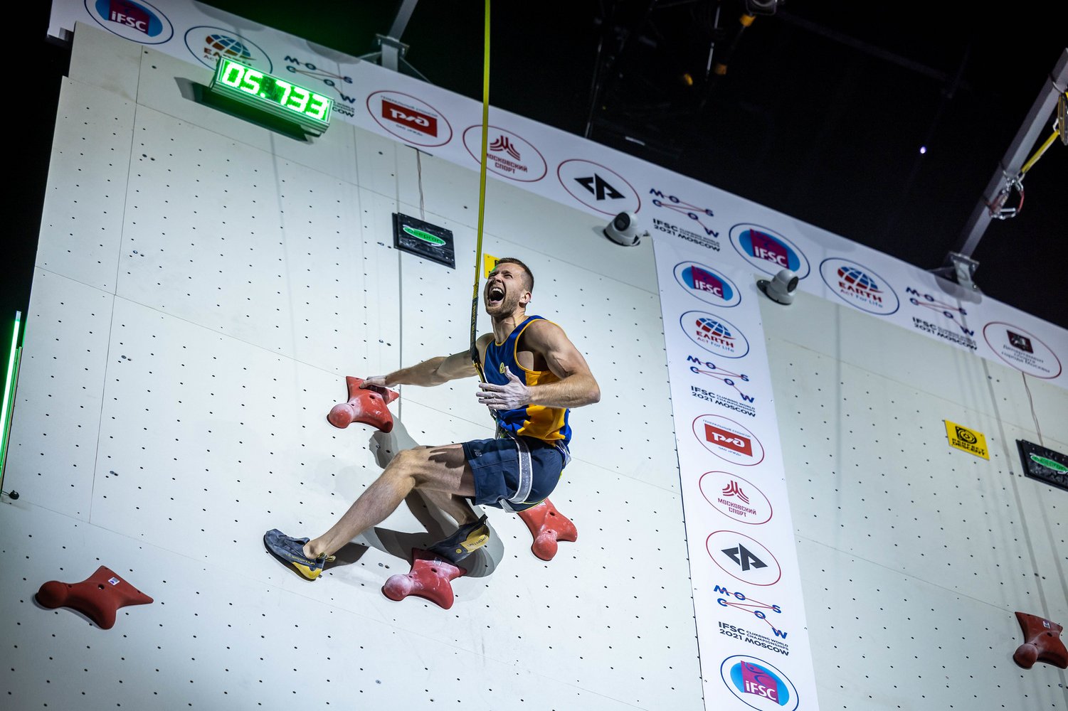 Kurz nach der offiziellen Eröffnung durch Debra Gawrych, Generalsekretärin des internationalen Sportkletterverbands (IFSC), krönten die IFSC-Kletterweltmeisterschaften 2021 in Moskau, Russland, Danyil Boldyrev aus der Ukraine und Natalia Kalucka aus Polen zu den Speed-Weltmeistern 2021 bei den Männern und Frauen.