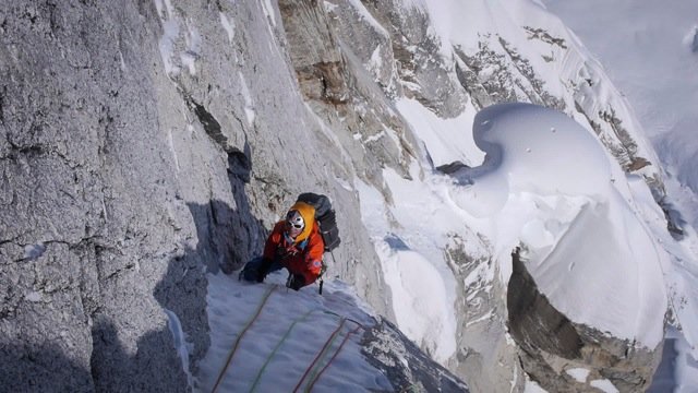 Davids Stärken im Fels ergänzen sich perfekt mit den Fähigkeiten des Eisspezialisten Dani Arnold. Die Wand aber wird immer abweisender. Oft meinen die beiden in einer Sackgasse zu stecken, finden dann aber immer wieder eine Möglichkeit weiter zu kommen. „Es war keine einzelne Seillänge die uns durch ihre Schwierigkeit besondere Mühe bereitete, vielmehr war es die zwingende Kombination vieler verschiedener Kletterstile bei schlechter Absicherung die den Anspruch der Kletterei ausmachte.“ erklärt David Lama.