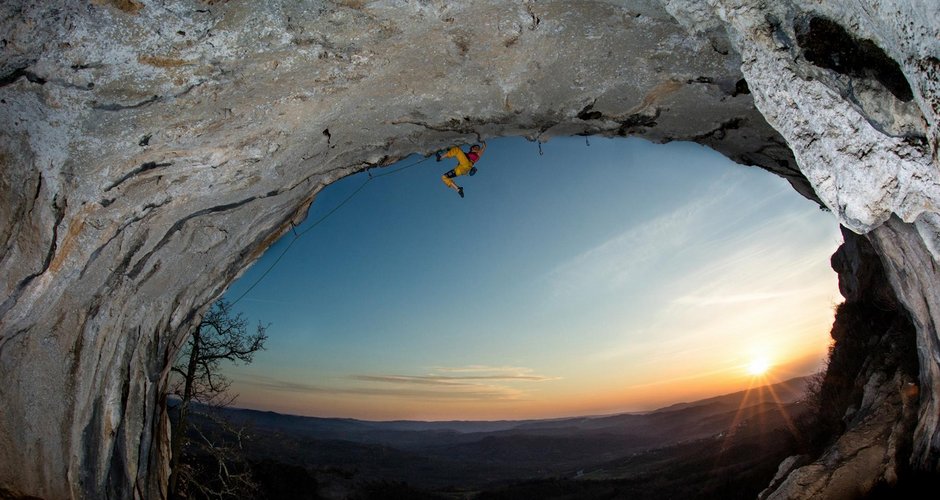 Die Linie zeichnet sich durch ihre athletischen Züge an überhängenden Sinterfahnen aus und liegt im Sektor Olymp im tollen Klettergebiet Kompanj. Das abschließende kleingriffige Finish bereitete Andrea gehörig Kopfzerbrechen.