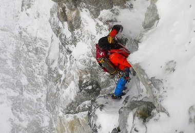 Die Antwort fällt mir schwer, da alle meine Versuche gedanklich in einem einzigen Bild zusammenfließen. Wir kennen das Ergebnis, den erfolgreichen Abschluss des Aufstiegs. Wir hatten steiles Eis sowie schwere Mixed-Passagen und mussten uns lange in großer Höhe bewegen. Es ist jedoch gar nicht so leicht, Details herauszugreifen, die letztlich zum Erfolg geführt haben. Bei jedem Versuch hatten wir zu Beginn eine echte Chance, den Aufstieg zu beenden. Mal stand dies, mal das im Weg. Wenn ich es zusammenfassen würde, waren wir immer optimal vorbereitet, körperlich, mental und organisatorisch. Gestärkt waren wir durch unsere Erfahrungen aus früheren Begehungen, die uns eine mentale Widerstandsfähigkeit aufbauen ließen, die auch dann standhält, wenn es hart auf hart kommt oder man scheitert. Wir behielten stets im Kopf, weshalb wir hier waren und was wir erreichen wollten. Unter widrigen Bedingungen löst sich alles auf. Dann ist der Glaube an das Ziel, das nicht nur der Gipfel, sondern auch die Rettung sein kann, der wichtigste Teil des Erfolgs. Wenn ich die Essenz aus all meinen alpinistischen Erfolge ziehe, ist das Ergebnis auch für mich überraschend. Es ist Geduld.