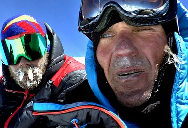 Zdeněk Hák und Marek Holeček völlig erschöpft am Gipfel des Gasherbrum I, 2017 (c) Marek Holeček