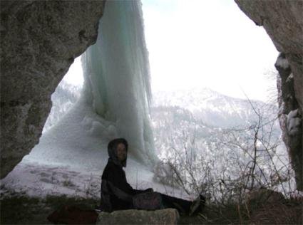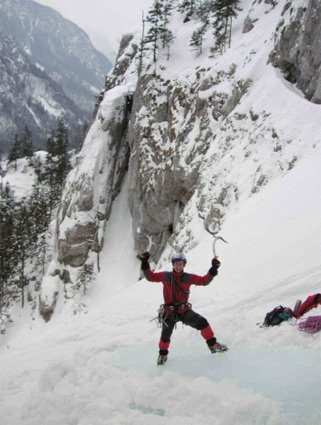 Begonnen hatte alles beim Eisklettern mit Robert im Hieflauer Klettergarten. Es war es einer dieser Tage, ich war völlig am Ende, total aufgepumpte Unterarme, meine Knie zitterten und ich dachte mir auch dieses Mal:“es ist an der Zeit die Geräte für immer an den Nagel zu hängen“, als Robert frohen Mutes und mit breitem Grinsen im Gesicht sagte: “Za on, schau ma si nu de Jungfrau in Radmer on!“ Eigenartig, aber das Wort „Jungfrau“ löste in mir eine Vorstellung und einen reflexartigen Impuls aus, der sofort meine letzten Reserven mobilisierte und mich instinktiv mit „eh klor!“ antworten ließ. Ich brauch natürlich nicht zu erwähnen, wie enttäuscht ich 15 min später war, als wir, nein, nicht eine wundeschöne Jungfrau vor Augen hatten, sondern mitten auf der Straße irgendwo in der Pampas standen und ein riesengroßes Stück Eis betrachteten.