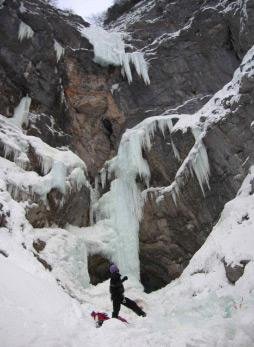 Als ich den ersten großen Schock überwunden hatte, dass es sich bei der Jungfrau aus Radmer um einen riesen Zapfen Eis handelte, verspürte ich jedoch schon wieder ein leichtes Zucken in den Unterarmen, und mir war sofort klar, dass es sich um ein eindeutiges Zeichen handelte: „Dieses Baby muss bestiegen werden!“ – Ich hatte zuvor noch nie einen so großen Zapfen Eis gesehen. Die Einzige, die ich zumindest aus der Ferne gesehen hatte, war die Eissäule am Wasserfallweg. Man kann sie von der Straße Hieflau Richtung Gstatterboden aus sehen. Von dort wirkt sie, als wäre sie nicht dicker und größer als eine Stecknadel.