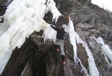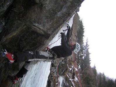 Die Trytooling-route befinden sich zwischen dem Übungsfall und Hals-Überkopf (siehe Eiskletterführer "Eisklettern in Tirol" und sind angeschrieben!