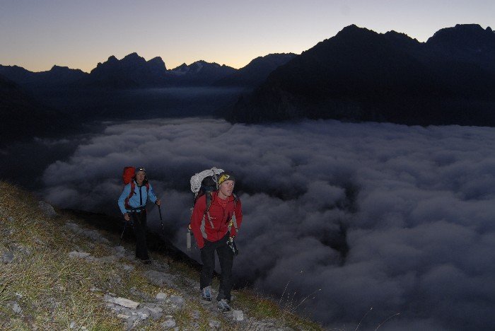 Um uns vom Urbachtal den 2 1/2 stündigen Zustieg zur Wand zu verkürzen, richteten wir uns auf der oberen Stöckalp ein.