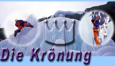 Wir standen direkt unter dem Überhang auf einer fast runden Eiskrone die das von den Überhängen tropfende Wasser gebildet hatte. Zum Glück hatte Josef eine zweite Haue für sein Eisbeil dabei, denn mit diesem Problem hatte er schon Erfahrungen gemacht. Er hatte seinen Pickel schon repariert ehe ich zu ihm auf den Standplatz kam. Oft kommt mir Josef vor wie ein Zauberer, der alles zugleich machen kann, ohne dabei die Ruhe zu verlieren. Die Köpfe in den Nacken, betrachteten wir die drohenden Eiszapfen über uns die Swami Prem Darshamo mit folgenden Wort beschrieb: "Die nächsten zehn Meter sehen furchtbar aus. Wohin wir auch schauen, überall senkrecht übereinandergeschichtete kleine Eiszäpfchen, ein klirrendes und unkletterbares Eismosaik aus Stalaktiten und Luftkammern. Herrlich für das Auge eines Males, schrecklich für das eines Eiskletterers. Seltsame Gedanken spuken durch unsere Köpfe: ein Wurfanker würde uns weiterhelfen....., nur noch ein dreifacher Steigbaum.... Lauter Hirngespinste. Solch ein ziseliertes Kunstwerk aus Eis ist nie und nimmer kletterbar, wir müssen zurück."