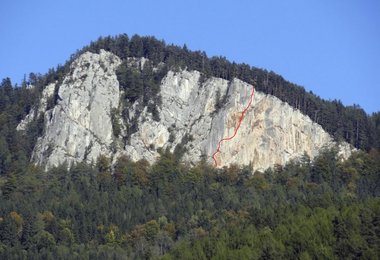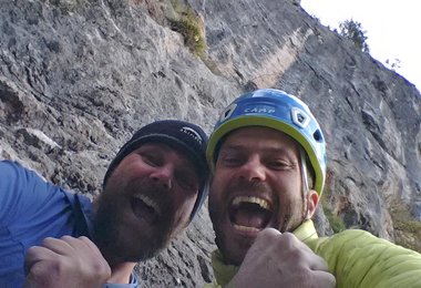 Ich startete Ende August, seilte an einer Sanduhr ab und suchte die Stände. Nach 2 Tagen in der Wand hatte ich einige Keile fixiert und konnte die Schlüsselstellen einigermaßen frei klettern. Jetzt brauchte ich nur noch einen willigen und fähigen Sicherungspartner. Mein Freund Alex Schranz sagte zu. Wir kletterten die 6a+ Länge zum ersten Stand, wo das eigentliche Klettern begann. Ich brauchte 3 Trainingstage im Vorstieg. Einige Stürze und viele Nervenstränge später punktete ich die 8a Länge und kurz darauf die 7c. Glücklich aber auch wehmütig beendete ich eine Vision, die ich vor 10 Jahren das erste Mal hatte. Nämlich Rotpunkt durch die Drachenblut zu klettern ...auf den Spuren meines Freundes Martin Riegler.