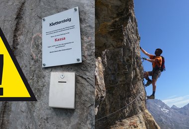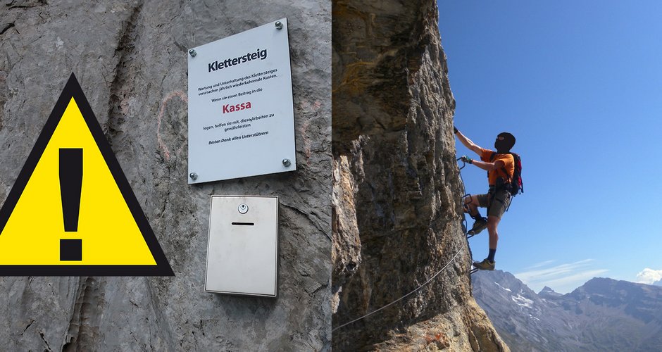 Obwohl sich Klettersteige durch den Massenandrang sich oft in kürzester Zeit amortisieren, werden in der Schweiz traditionell noch zusätzlich Spendenboxen angebracht. Mit einem kleinen Beitrag kann man die Erhaltung und nicht selten auch den Ausbau des besuchten Klettersteigs unterstützen.