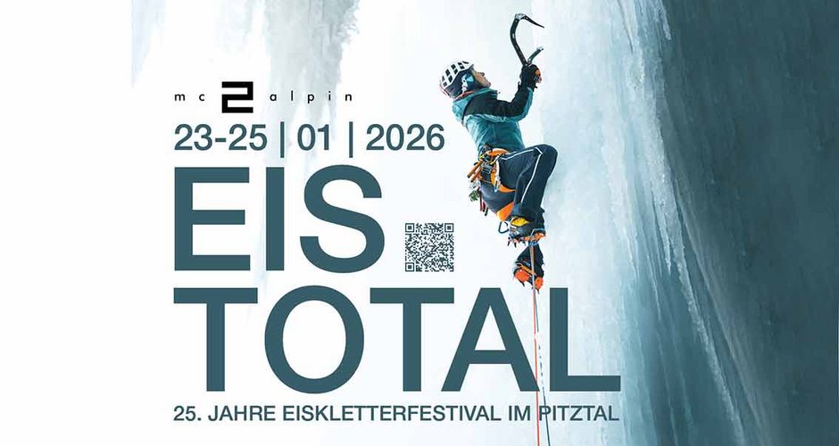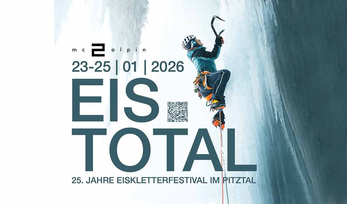 Nach dem großen Erfolg der letzten zwei Jahrzehnte findet das 25. Eis Total Festival im Jänner 2026 wieder im Tiroler Pitztal statt. Der Veranstalter freut sich über ein ausgebuchtes Event – auch die Eisverhältnisse könnten aktuell nicht besser sein! Bizarre Eisfälle, überhängende Boulder und echte Basecamp-Atmosphäre erwarten die Teilnehmer aus dem gesamten Alpenraum, dazu das neueste Material zum Testen.