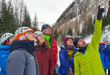 Das Damenfinale fand dann auf der Ausscheidungsroute der Herren statt, wobei die Damen beim überhängenden Längenzug kurz vor dem Eisschild rechts noch das Eis als "Zwischengriff" verwenden durften. Auf dem obersten Treppchen stand schlussendlich Victoria Vojtech aus Wien, die auch dem aktuellen Jungen Alpinisten Team des OeAV angehört. Auf Platz 2 kam Claudia Breitschopf (Naturfreunde Alpinkader) aus Innsbruck, auch sie konnte die Finalroute bis zum Top klettern, war aber etwas langsamer als die Siegerin aus Wien. Als Dritte stand Hannah Rabl aus Innsbruck (bzw. Bad Häring) bei ihrem Eiskletter-Wettkampf Debüt auf dem Treppchen (da sind wir von bergsteigen.com natürlich mächtig stolz auf unseren Nachwuchs).