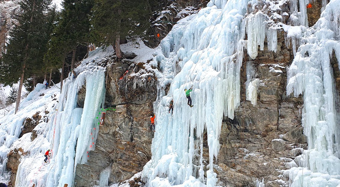 Erster offizieller Programmpunkt war das sogenannte Eismaster - ein Speedwettbewerb an einer mittelschweren, ca. 20 Meter hohen Eisroute. Trotz guter Präsenz von österreichischen Eisathleten ließen sich die Osttiroler den obersten Stockerplatz nicht nehmen - bei den Herren siegte Seriensieger Matthias Wurzer in 20,1 Sekunden aus Kals und bei den Damen Julia Popeller in 35,4 Sekunden aus Matrei. Gesamt waren bei diesem Bewerb fast 50 Kletterer am Start, das Startgeld wurde für einen guten Zweck gespendet.