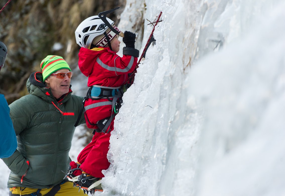 Den Beginn des 1. Osttiroler Eiskletterfestivals bildete Freitag Abend der Vortrag des Vorarlberger Ausnahmekletterers Beat Kammerlander im prall gefüllten Matreier Tauernhaus. Er war auch gestern bei den Workshops anwesend, wo Anfänger und Profis die Wasserfälle am Rande der Nationalparkregion Hohe Tauern eroberten. Übrigens, der jüngste Teilnehmer war der Kalser Felix, der heute seinen erst 4. Geburtstag feiert (Fotos unten). „Wir waren über den Besucheransturm der hunderten Gäste verblüfft. Das hat uns gezeigt, dass der Eispark Zukunft hat“, freute sich Silvester Wolsegger. Die Region zählt zu den eissichersten Gebieten in Österreich und bietet Klettermöglichkeiten in allen Schwierigkeitsgraden und -längen. „Ein großer Dank gilt den Firmen Austrialpin, Adidas Outdoor und Petzl, die ihre neuesten Produkte zum Testen zur Verfügung stellten“, ergänzt Wolsegger.