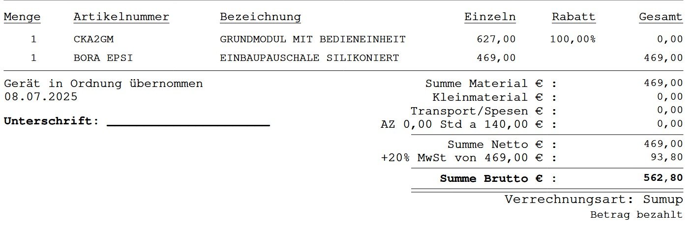 Als wir die Rechnung der Firma Elektro Hochegger dann beim Handwerkerbonus einreichen wollten, stellte sich heraus, dass die Arbeizeit von Elektro Hochegger – absichtlich? - falsch nur unter Material ausgewiesen war, obwohl die Einheit ja gratis von Bora kam. Der Bitte, uns eine korrekte Rechnung auszustellen, wurde auch nicht Folge geleistet. Die Rechnung entspräche dem Kostenvoranschlag, der ganz offensichtlich auch schon falsch war.
