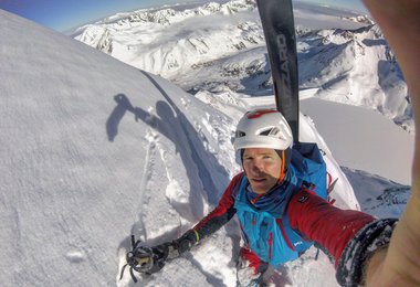 Nachdem ich mittlerweile jede Route in dieser Wand geklettert bin und auch die Plan B auf Speed gegangen bin (23 Minuten vom Einstieg bis zum Ausstieg), kam mir immer wieder eine Skiabfahrt durch diese Wand in den Sinn, vor allem, da ja das meiste Gestapfe ist.