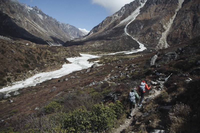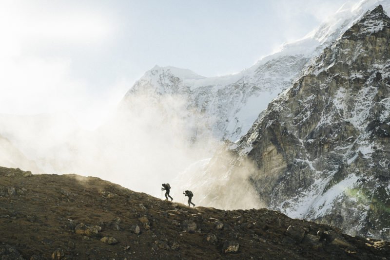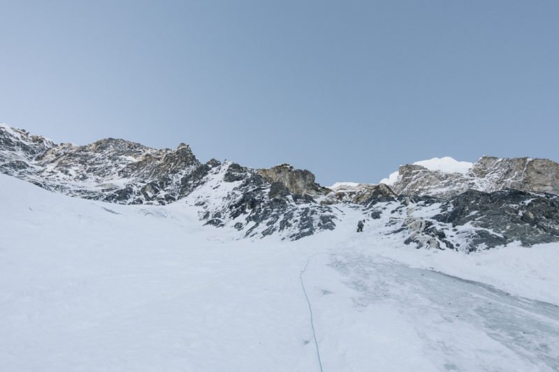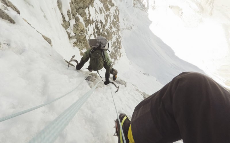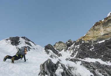 Zur Akklimatisierung verbrachten die beiden Alpinisten, welche den Gimmigela East im Alpinstil besteigen wollten, drei Nächte in einer Höhe von 5900 m auf dem Südgrat des Dromo Ri, bevor sie am 8. November 2016 in die 1200 Meter hohe Nordwand des Gimmigela Easts einstiegen.