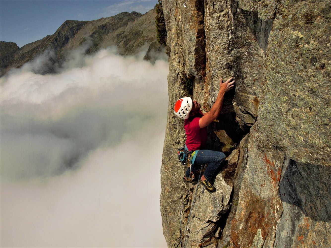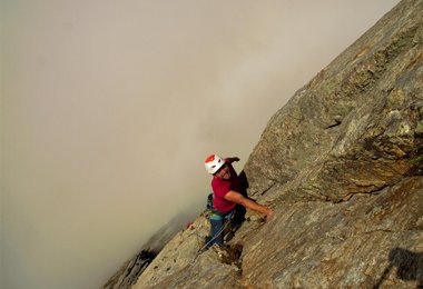 Länge für Länge kämpften wir uns hinauf, mussten immer wieder abseilen oder in der Wand übernachten. Erschöpft und gleichzeitig erleichtert, erreichten wir Mitte August den Gipfel, seilten ab und gönnten uns 14 Tage Erholung bevor wir zum Rotpunktversuch zurückkehrten.