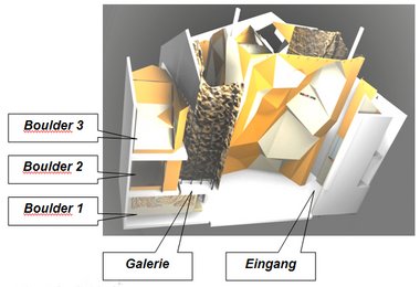 Das Modellbild zeigt die Kletterhalle mit ihren vielen Möglichkeiten: