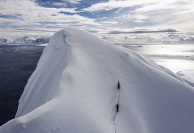 Kaum schwanden die Wolken, eröffnete sich dem Team ein Paradies für Extremsportlerinnen. Ein gefährliches Paradies, bei dem die Athleten umso mehr in die eigenen Fähigkeiten und die Ausrüstung vertrauen mussten. Dem optimal ausgerüsteten Team um Mammut Pro Team Athletin Caro North gelang beides und wurde belohnt mit eindrücklichen Bildern und noch einzigartigeren Erlebnissen. Auch wenn nur knapp vier Expeditionstagetage gutes Wetter mit sich brachten, sei die Expedition ein Erfolg gewesen so Caro North: «Das Erlebnis war einzigartig. Das an Land gehen und mit Ski erste Spuren in den Schnee ziehen, durch Pinguine hindurchpaddeln, im Schneesturm durch Robben hindurchlaufen, um Eisklettern zu gehen oder das Durchqueren der Drake-Passage war unglaublich.» Zwar hätte sie sich mehr Zeit zum Klettern gewünscht und träumte davon, eine Mixed Route erstzubegehen, trotzdem sei sie dankbar teil dieser Expedition gewesen zu sein. «Unsere Skitour auf einer Insel, die nur aus einem Berg bestand, während eines ganz kurzen Wetterfensters - das war sicherlich ein Moment, den ich nie vergessen werde», ergänzt Caro. Das Ergebnis sind faszinierende Bilder, menschenleere Landschaften und schneebedeckte Berge vor einer surrealen Kulisse aus Eis und Meer.