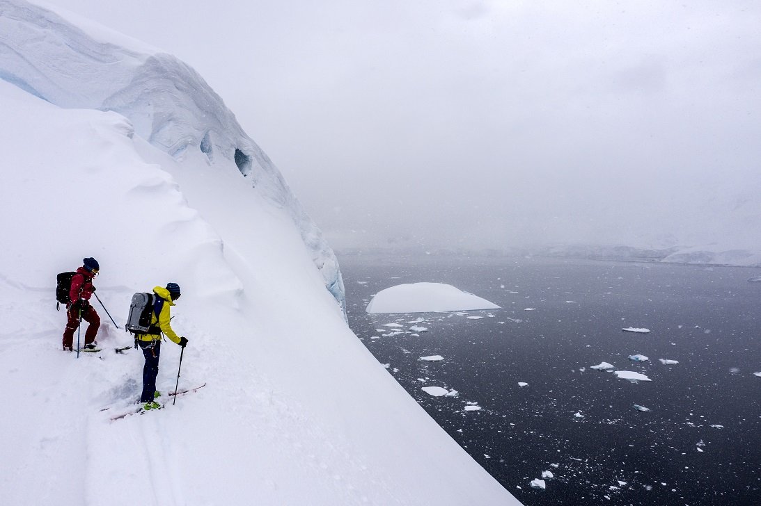 Die Reise in die Antarktis lockte Caro North und Bergführer Guillaume Martina in ungewohntes Terrain. Mit der Hoffnung auf dem nördlichen Zipfel der Antarktis unzählige, teils noch nie betretene, schneebedeckte Inseln zu finden, Sie zu klettern, zu besteigen sowie herunterzufahren, betraten Sie das Deck ihres Segelschiffs in Ushuaia, Argentinien. Der erste Teil der Reise hatte es bereits in sich. Begleitet von Bergführer Daniel Coquoz, den beiden Skippern Caroline Theoret und Mark van den Berg sowie dem Fotografen Laurent Bruchez und dem Filmemacher Jaques Vouilloz musste die berüchtigte Drake-Passage überquert werden. Ohne viel Segelerfahrung verlangte die Meeresstrasse zwischen der Südspitze Südamerikas und der Nordspitze der Antarktischen Halbinsel den Athleten körperlich bereits einiges ab. Vier bis fünf Tage auf dem offenen Meer später konnten die Südlichen Shetlandinseln erreicht werden. Die Suche nach verschneiten Gipfeln, atemberaubenden Skiabfahrten und anmutigen Fels- und Eisformationen konnte beginnen.