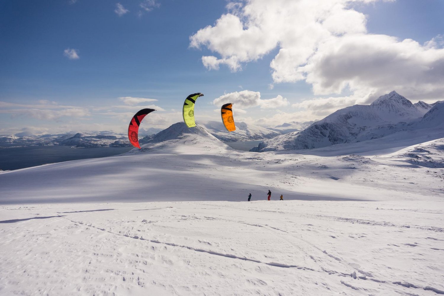 Auch wenn die große Herausforderung verlockend erscheint und die Sehnsucht nach dem wahren Abenteuer groß ist, bei ihrer nächsten Snowkite-Reise wollten die vier Freunde nun endlich in den Genuss kommen, völlig ohne Kraftaufwand nur durch die Kraft des Windes in Rekordzeit einen Gipfel nach dem anderen zu erkiten um danach, mit dem Kite im Rucksack verstaut, die Abfahrt zu genießen. Nachdem Nächte lang topographische Karten, Wettermodelle und Statistiken studiert wurden, fiel die Wahl schlussendlich auf die Lyngen Halbinsel und die Lofoten in Norwegen.