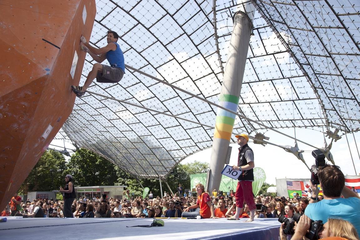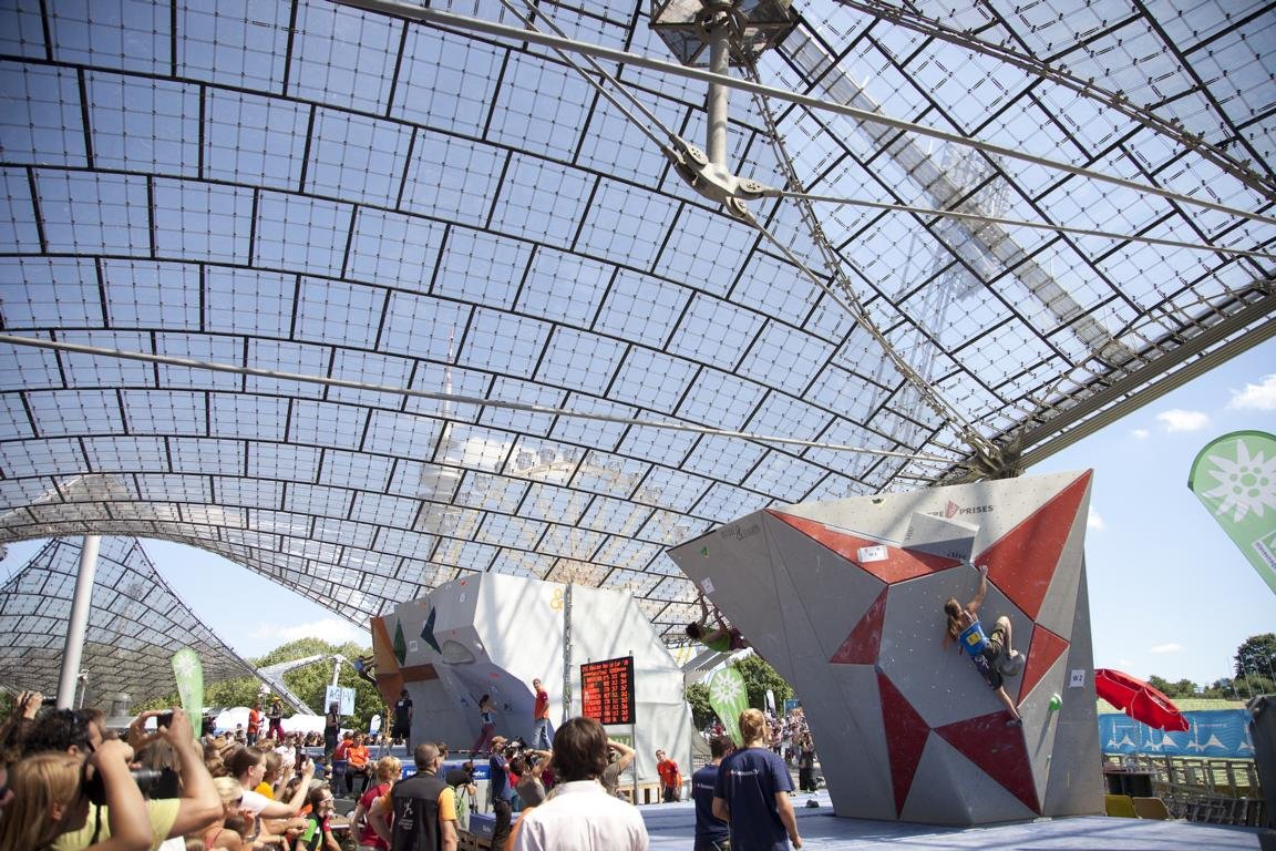 Das Münchner Olympiastation, bekannt als Schauplatz vieler historischer Sportveranstaltungen, war am Wochenende ein mehr als würdiger Schauplatz für das Weltcupfinale der Boulder-Weltcupsaison 2010. Hochspannung war vorprogrammiert, da sowohl bei den Damen als auch bei den Herren der Kampf um den Gesamtweltcup noch offen war. Mehrere tausend Besucher wollten sich den Kampf um den Gesamtweltcup zwischen Kilian Fischhuber, dem erfolgreichsten Wettkampfboulderer der Gegenwart, und Adam Ondra, dem wohl komplettesten Kletterer der Welt, nicht entgehen lassen. Aber auch bei den Damen zog der Dreikampf um den Gesamtweltcupsieg zwischen Stöhr, Noguchi (JPN) und Graftieux (BEL) die Massen an.