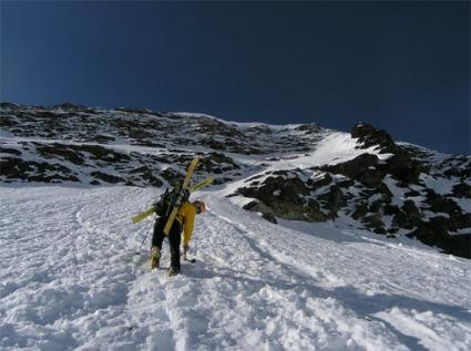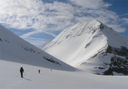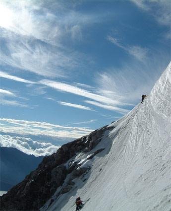 Firnanstieg, Stellen bis 45°, 450 Hm, Zeit: 2 – 6 Stunden.
