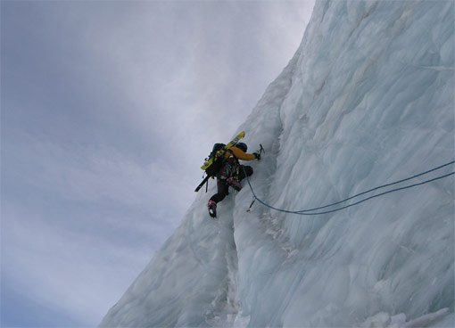 Reiner Eisanstieg, Stellen bis 75°, 400 Hm, Zeit: 3,5 Stunden.