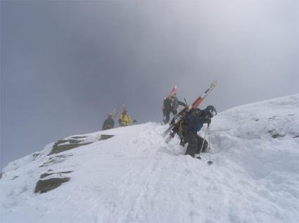 Firnanstieg, Stellen bis 45°, 250 Hm, Zeit: 3 Stunden.