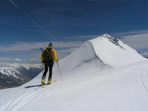 Der Romariswandkopf hat Ähnlichkeiten mit den Glockner Nordwandrouten, nur sind die Anstiege hier etwas kürzer. Nur bei wirklich guten Firnverhältnissen zu empfehlen - auch hier ein spaltenreicher Abstieg!